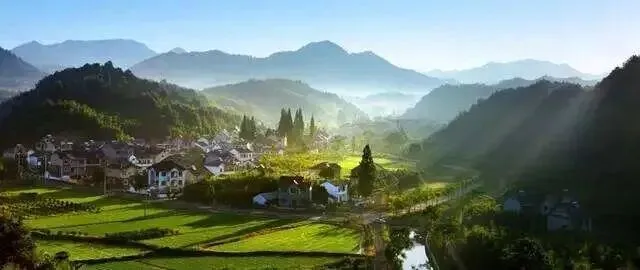 余村,“绿水青山就是金山银山”理念诞生地,村中道路笔直,民居整齐划一,村民们坐在村中银杏亭里聊天喝茶,呈现出一片其乐融融的“世外桃源”景象。余村地处天目山北麓,因境内天目山余脉余岭及余村坞而得名。全村区域面积有4.86平方公里,毛竹山有6000多亩,农田面积只有580亩,是个山多地少的小山村。风景秀丽,青山翠叠,流水潺潺,家家户户住进美丽楼房。