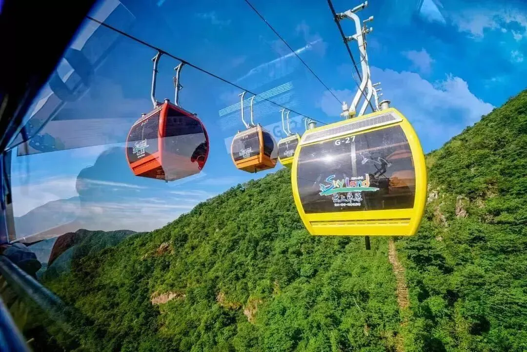 安吉首条观光索道2.3公里长,32个吊厢,43度最大倾角,700米落差,在20分钟的空中索道旅途中,由下而上,由仰到俯带你全角度领略的云上草原的美。