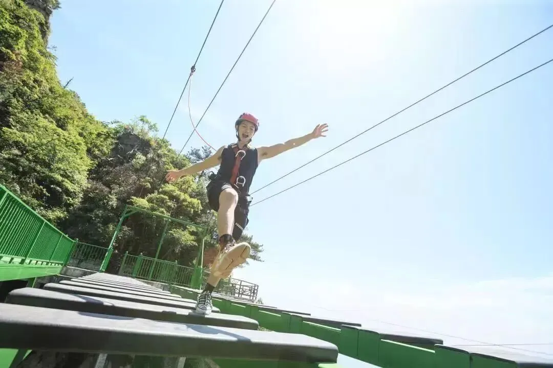 位于悬崖乐园北端,全长82米,全透明玻璃桥身,在桥上如同凌空漫步。