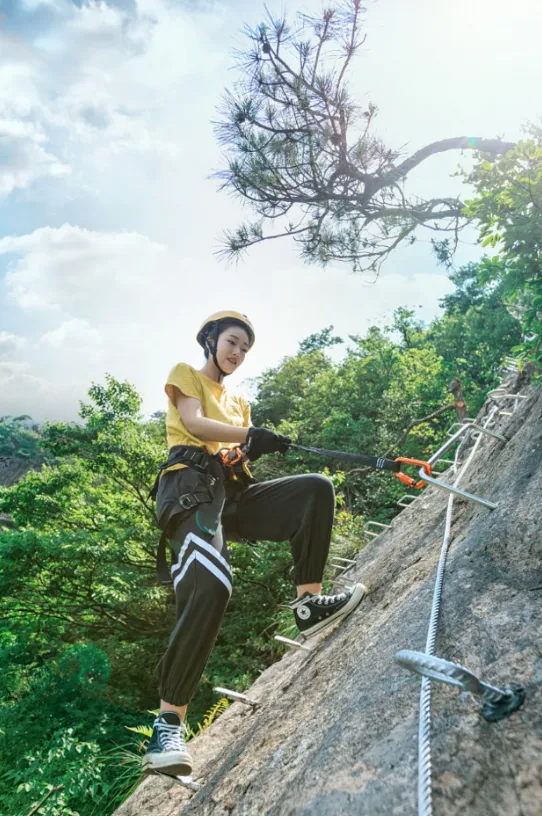 凌空飞步是在峭壁之上的悬空步道,悬于高空,附于巨石,桥面之下就是百米悬崖,小心翼翼地走每一步。
