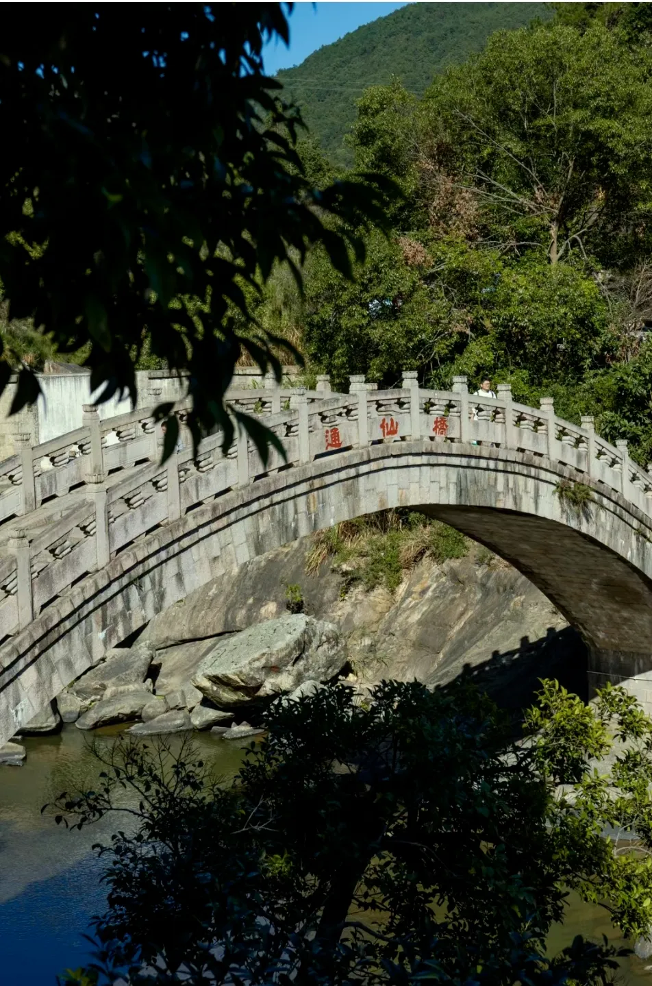 “通仙桥”意为通往人间仙境之桥,此桥用白色花岗岩砌成,从远处望去如月牙儿悬挂在山峦之间。