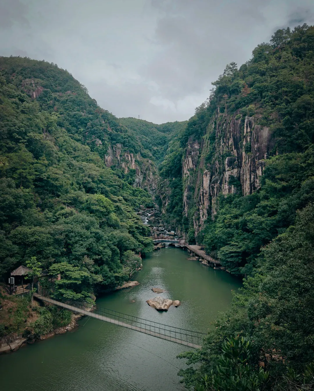 铁索桥长达100余米,由木板与铁索组成,两侧连着山谷小河,漫步桥上,可以感受一把惊险刺激的体验。
