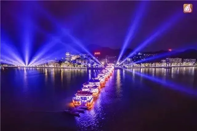 走到中国四大古桥之一的“广济桥”欣赏下它的夜景灯光秀