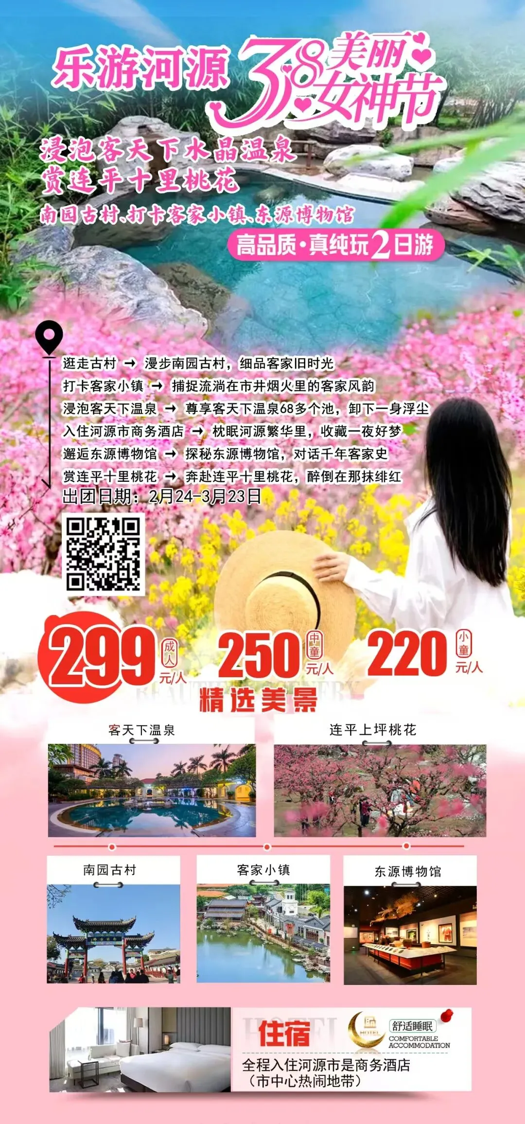 当前位置:首页>美女资讯>【汕之旅·女神节】3月7日出发~乐游河源、浸泡客天下水晶温泉、赏连平十里桃花·打卡客家小镇、东源博物馆两天游¥399/人