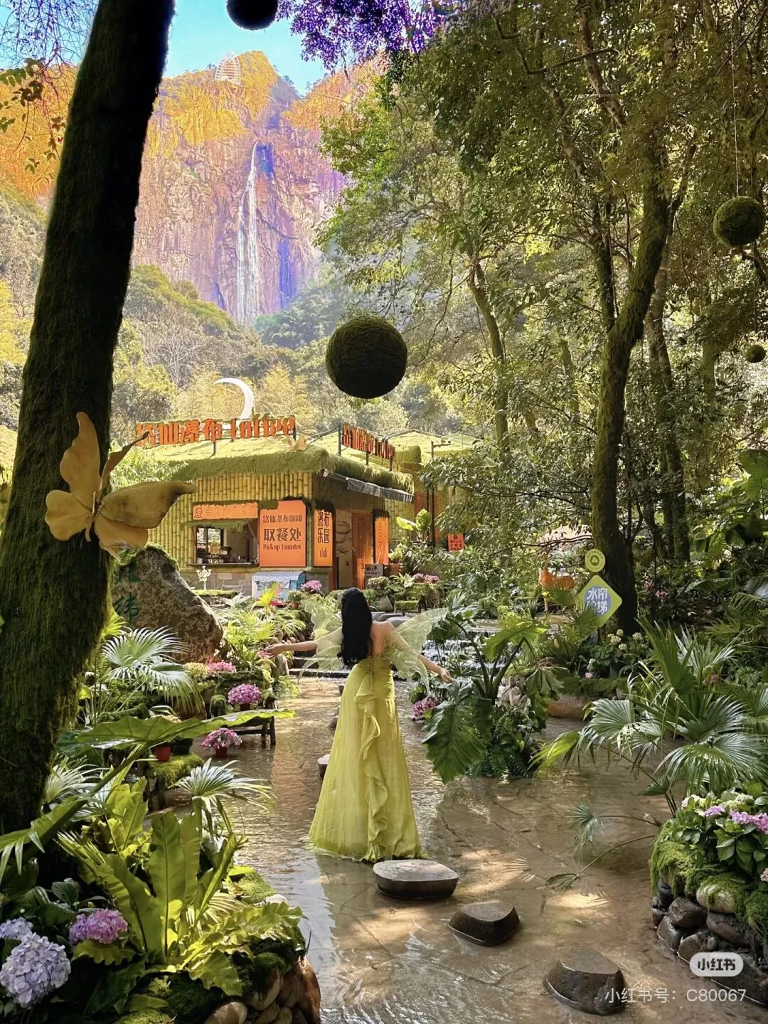 踏入绿野仙踪,仿佛跌进了一个由绿色绒毯编织的绮梦,覆盖每一寸土地,藤蔓垂落成天然秋千,水雾如薄纱弥漫,游客行走其间,化身童话主角,恍若《爱丽丝梦游仙境》。
