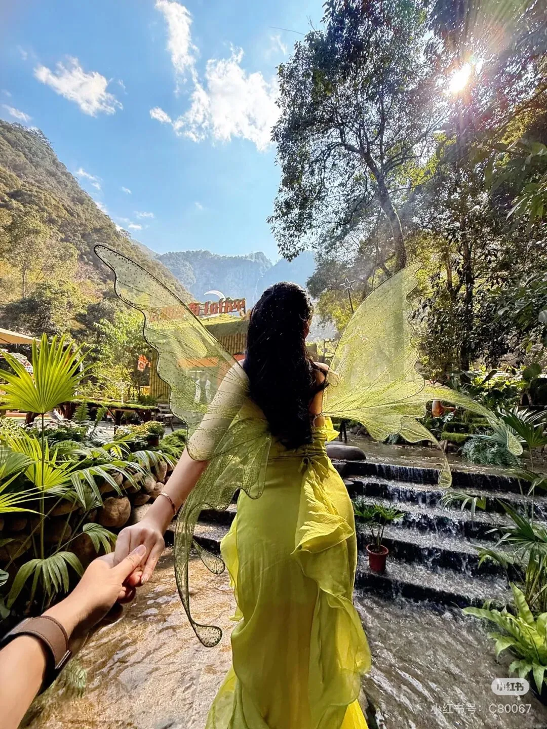 13:30打卡新晋网红打卡点【瀑布咖啡】【阶梯水道】踏入绿野仙踪,仿佛跌进了一个由绿色绒毯编织的绮梦,覆盖每一寸土地,藤蔓垂落成天然秋千,水雾如薄纱弥漫,游客行走其间,化身童话主角,恍若《爱丽丝梦游仙境》。