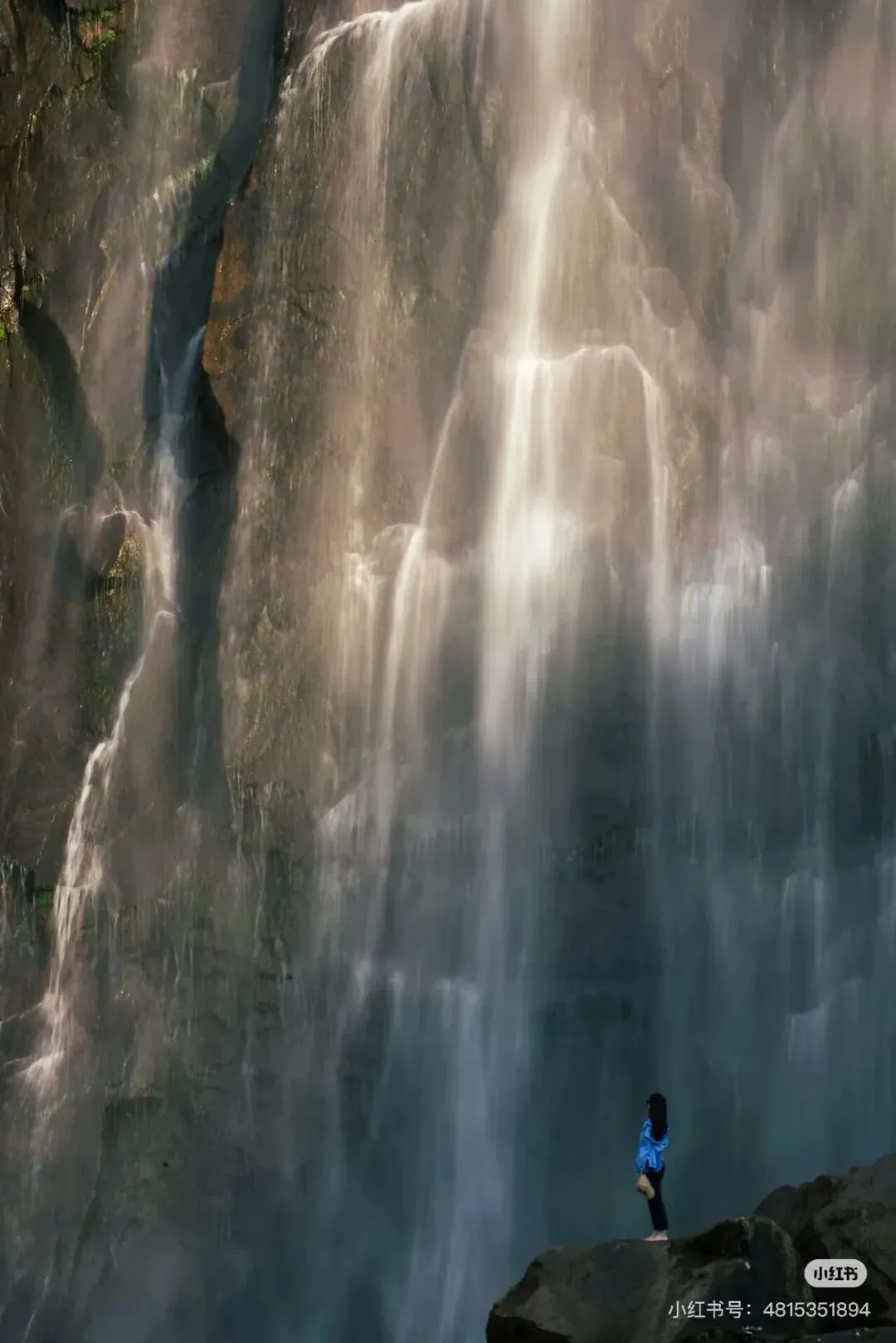 不羁的溪水如烈马脱羁,雄浑奔放,气势非凡;西边的油漏漈瀑布高约120多米,宽110多米,瀑水依崖缓流,恰似珠帘下垂,温和婀娜。