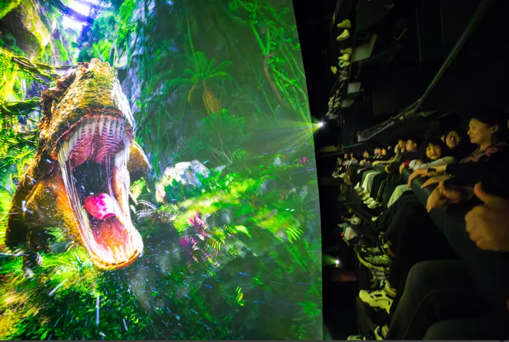 采用国际顶尖科技VRSoaring技术打造,大家将坐在悬挂式座椅中,在巨大的半球形银幕中,进入全包围虚拟环境。随着“飞机”的起飞,大家将与翼龙同行翱翔蓝天,饱览恐龙岛的美景。