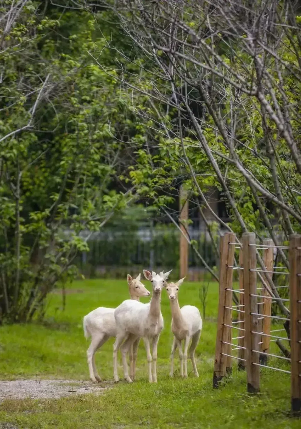 园区内四处可见的梅花鹿,以及可爱的小羊。在很多天幕前的草地上都可以看见梅花鹿在静静地吃着草,有小朋友靠近,梅花鹿也不会跑开,而是温顺的让人抚摸,这一刻仿佛进入一个童话世界,让人内心充满温暖。