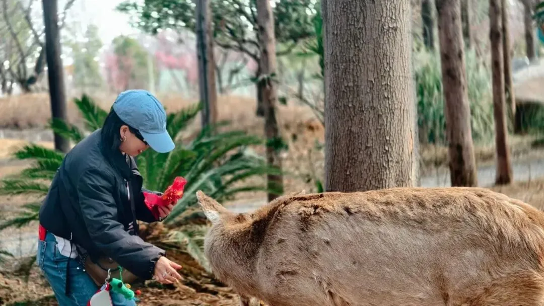 鹿儿在景区喂梅花鹿、松鼠、小羊羔、鹦鹉