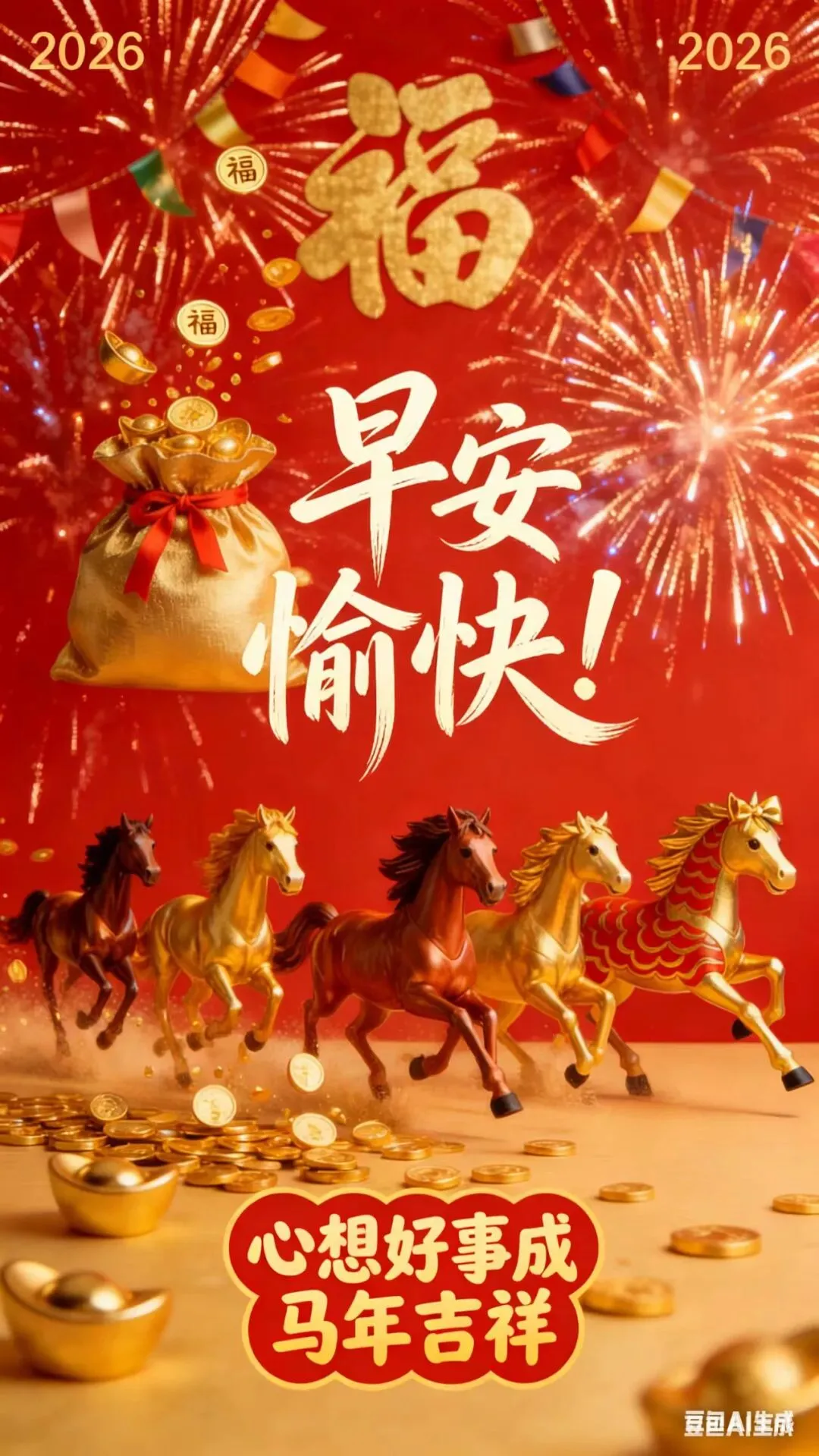 🧧2026马年初九,早安吉祥!🎉祝您老如骏马般精神,身体康健脚步轻,儿孙事业马到成,家常日子甜滋滋,平安健康长长久久,福气满满每一天!🌞🍵