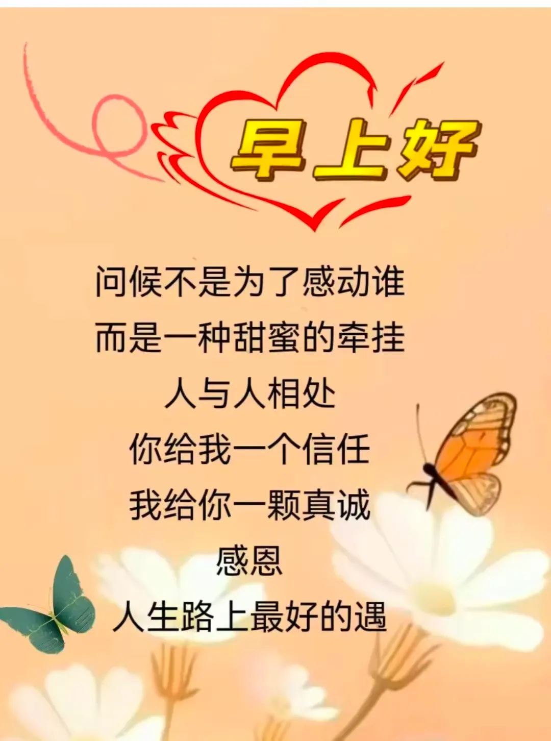 风含着笑,雨带着情,人生有缘才同行。走过一程风,又历一程雨,珍惜缘分,看重友情!心在,缘在,牵挂在,我的祝福永远都在!大家早上好!