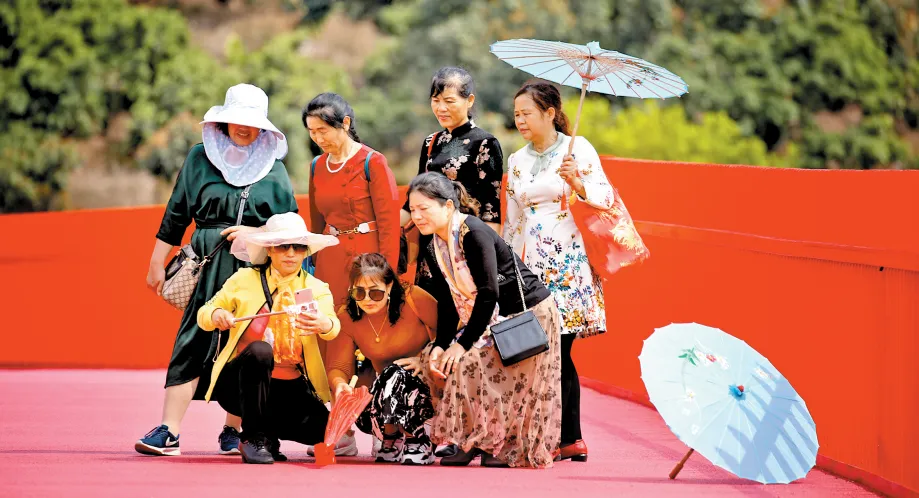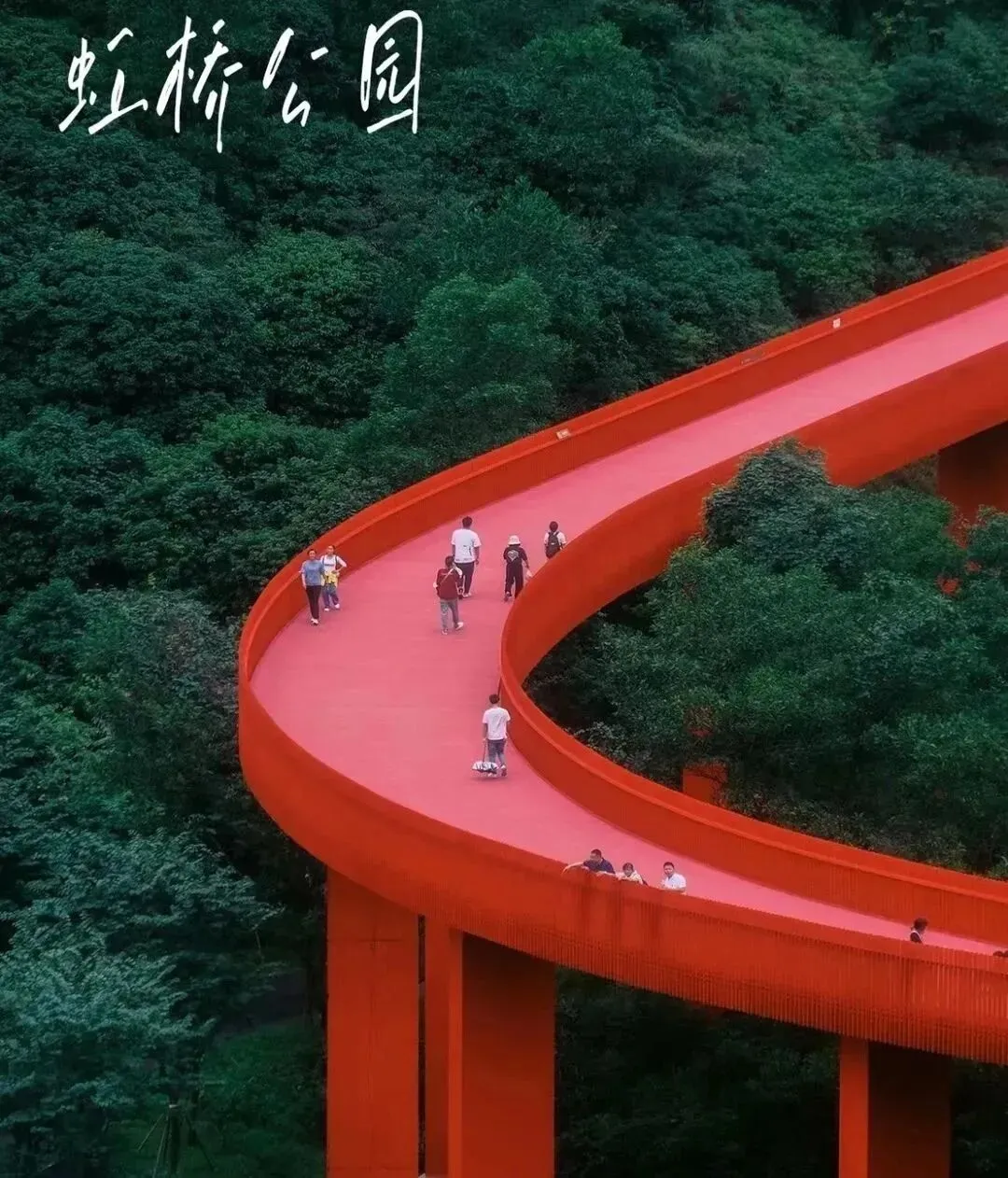 红桥全长4000m,铺设在一片枝繁叶茂的树林中十分醒目,好像哪吒的红飘带落入人间~漫步其中,犹如走在一条超长的红毯,四周都是闪光灯,我就是最耀眼的那颗Star~