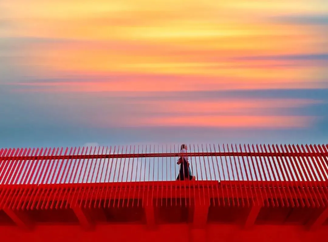 “红”绝对是这里的最大亮点,虹桥大块的红色非常霸道,又颇有过年的喜庆,与蓝蓝的天空相遇,过来拍照简直美呆了。