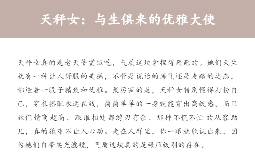 当前位置:首页>美女资讯>公认的女神,最有气质的三个星座女