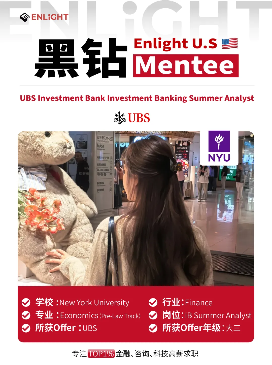 换句话说,尽管我不是传统金融背景出身,我依然可以在顶级投行面试中展现“逻辑 + 定量 + 表达”的复合能力——最终拿下UBS的Summer Analyst Offer,也验证了这一策略。加入Enlight,我开始了一段“双线人生”。