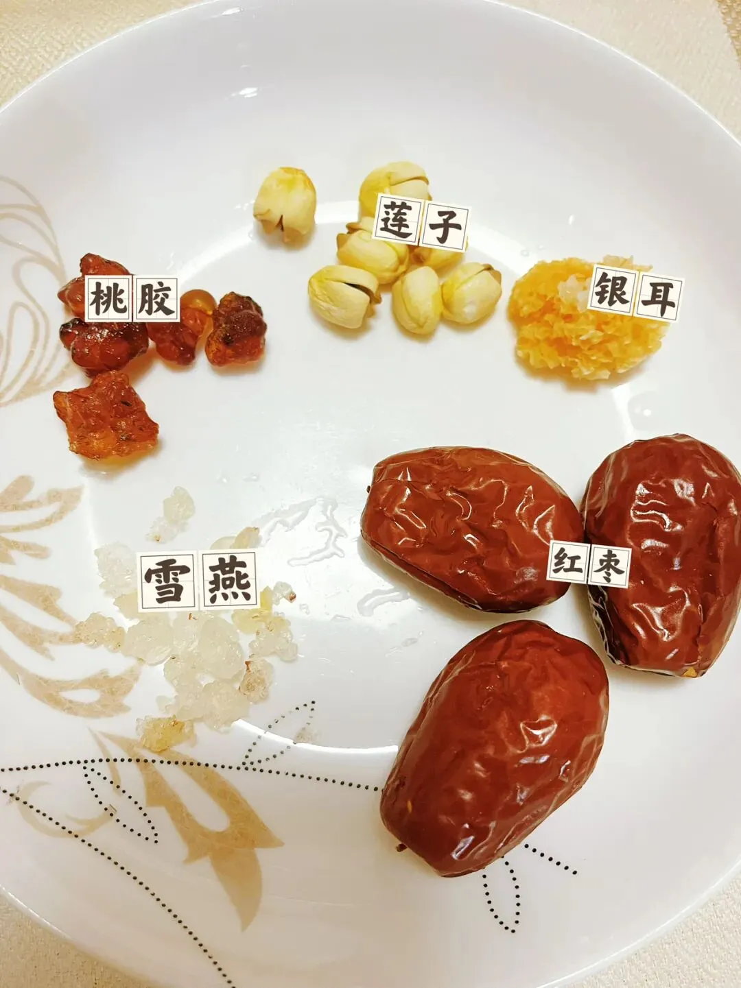 银耳、红枣、莲子、雪燕、桃胶