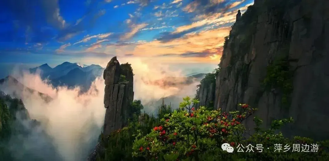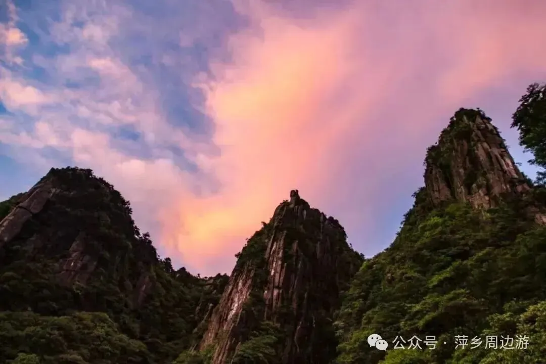 暮色降临,羊狮慕宛如梦幻之境。云海从谷底汹涌升腾,“云海福涌兆祥瑞”,好似一幅流动的水墨画,在天地间徐徐展开。特殊的地形让水汽凝结成六边形冰晶,在夕阳的余晖下,宛如万千“福”字剪纸在空中飘舞,给这片梦幻的世界增添了一份神秘而祥瑞的气息。山脚下安福县的灯火渐次亮起,“物华天宝福盈地,人杰地灵安福县”,好一幅祥和的画面,让人感受到这片土地的生机与活力,以及人们对美好生活的向往和追求。