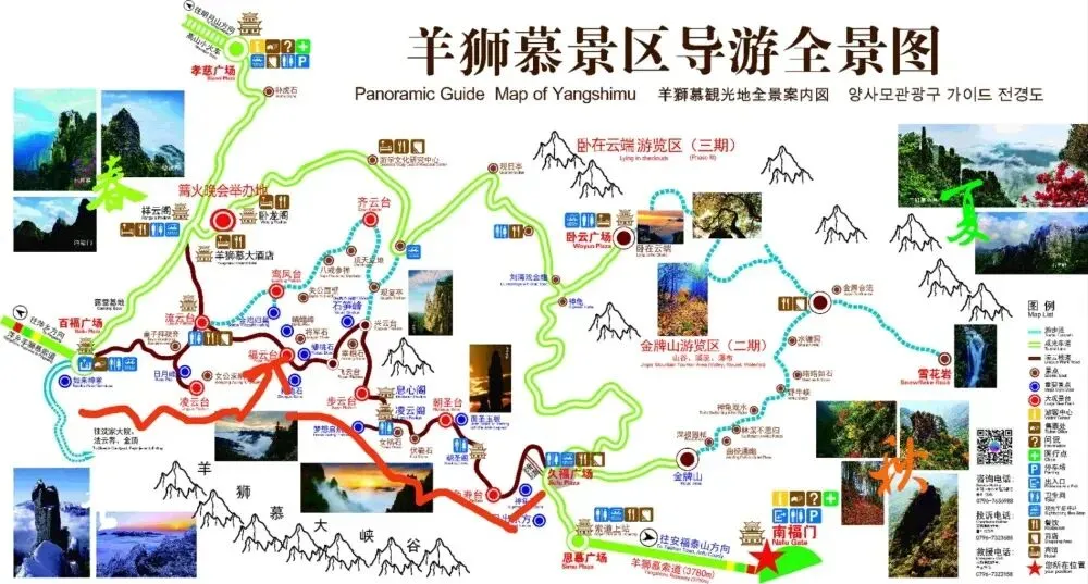 1、羊狮慕景区海拔较高(平均1600米,最高1764米),山上山下早晚温差较大,请游客朋友备好外套等防寒衣物。