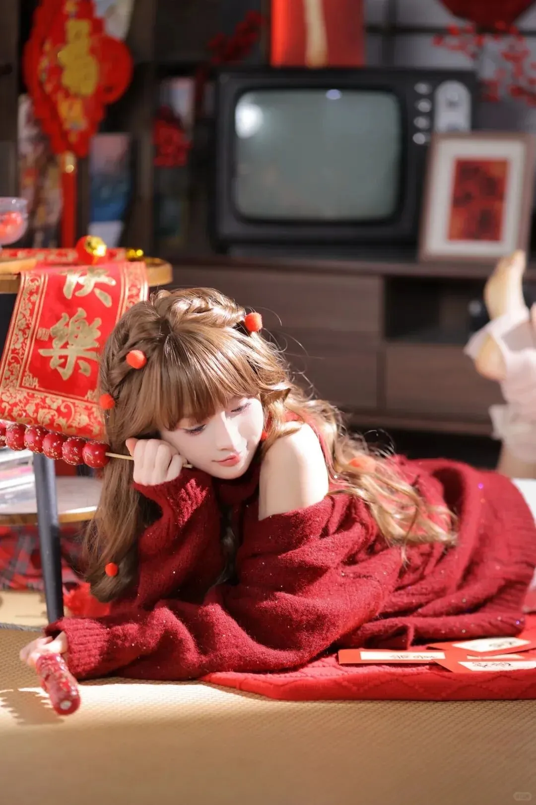 当前位置:首页>美女资讯>红绒新禧|马年居家甜妹复古新年写真