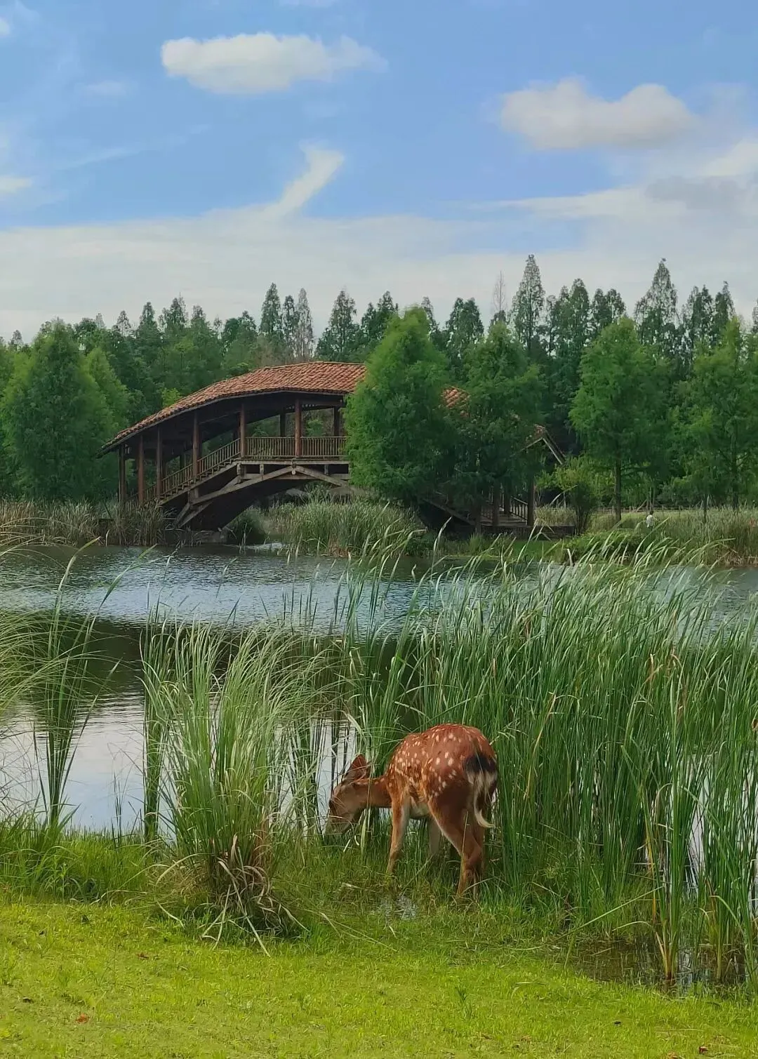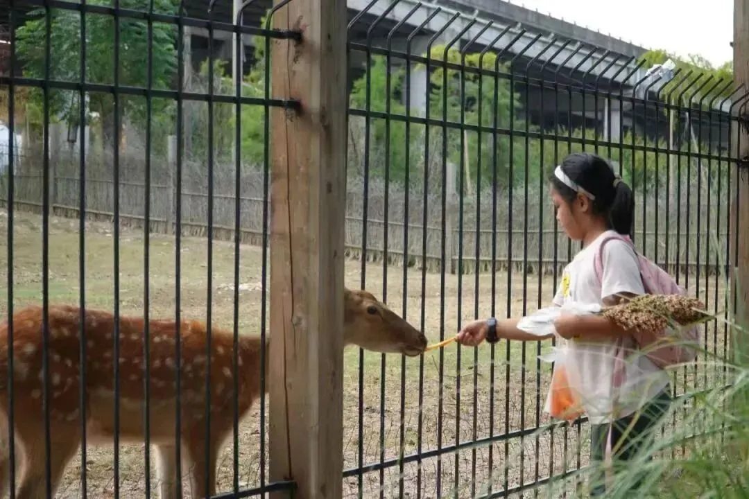 园区内四处可见的梅花鹿,以及可爱的小羊。在很多天幕前的草地上都可以看见梅花鹿在静静地吃着草,有小朋友靠近,梅花鹿也不会跑开,而是温顺的让人抚摸,这一刻仿佛进入一个童话世界,让人内心充满温暖。
