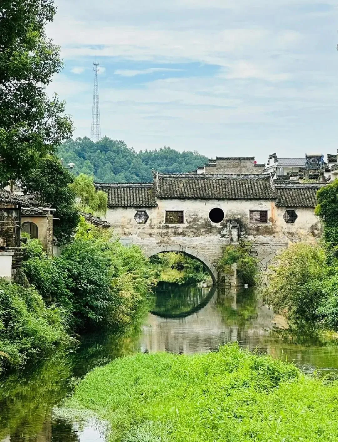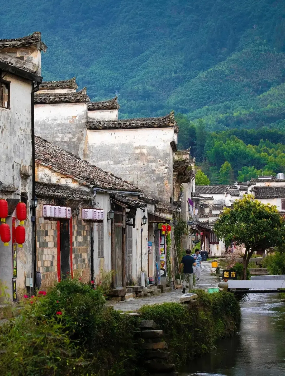 【许村】的精华集中在沿河的老街上,步行即可轻松游览。一座始建于元代的廊桥,是古村的标志性建筑。桥身带廊,既能遮阳避雨,也是村民闲聊、休憩的地方,光影效果绝佳,非常出片,一座造型独特的明代三层八角亭,是古村的“C位”。登至顶层,可以俯瞰许村的全景,白墙黛瓦的村落与青山绿水尽收眼底,村内保存着5座精美的明代石牌坊,是徽州牌坊的精品。