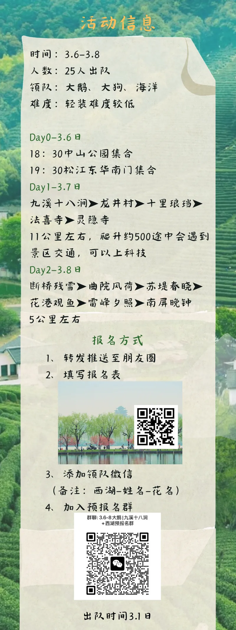 当前位置:首页>美女资讯>【女神节】3.6-8|轻徒九溪村,问道灵隐寺,一览西湖春色