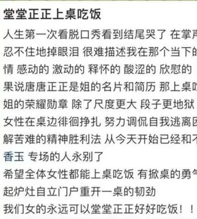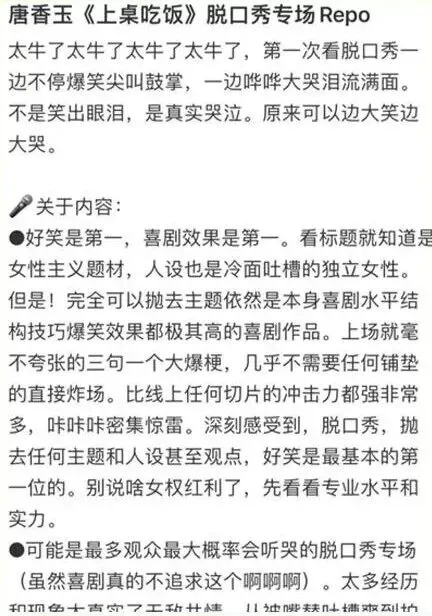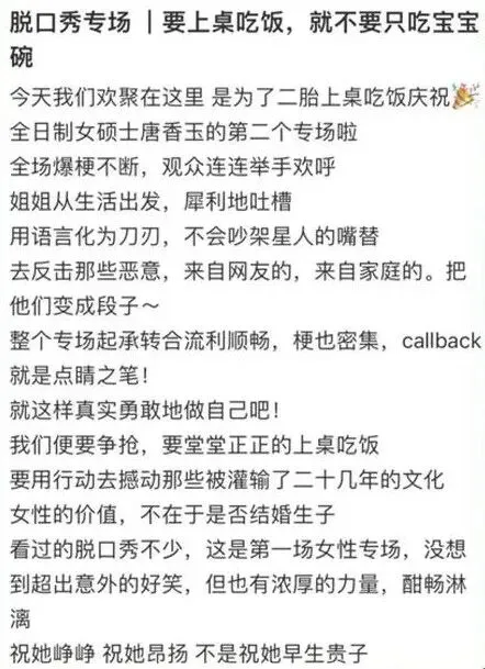 在综艺上杀疯全场,专治各种不服的唐香玉,已拥有《唐唐正正》《上桌吃饭》两个爆火的个人专场,全国巡演300+场,好评如潮。