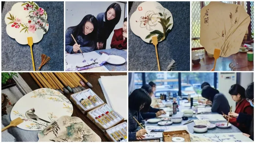 活动内容: 在团扇绘制环节,专业国画老师为您传授国画的基本技巧,从线条的勾勒、色彩的渲染,到构图的设计,一步步引导您在小小的团扇上创作属于自己的画作。当您手持自己绘制的团扇,轻摇之间,仿佛扇出了千年的诗意与柔情。
