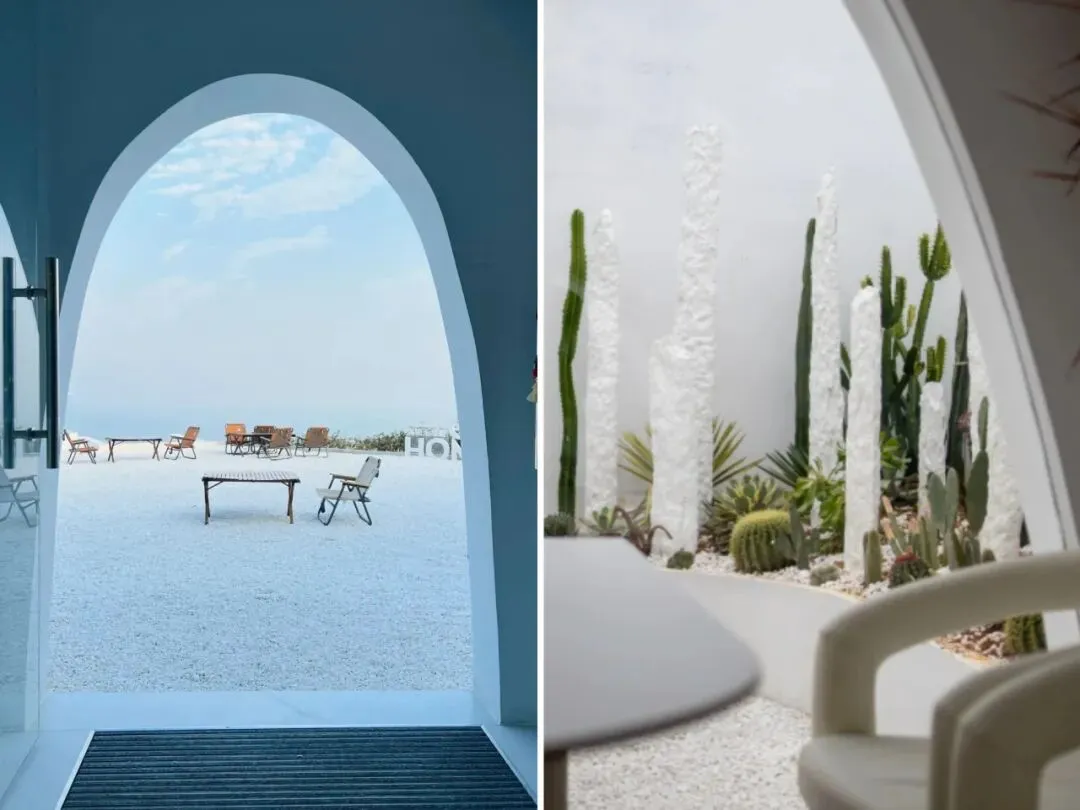 整体色调蓝白调,干净清爽的色系,有两层,上层比较经典的打卡点,下层就是咖啡馆。
