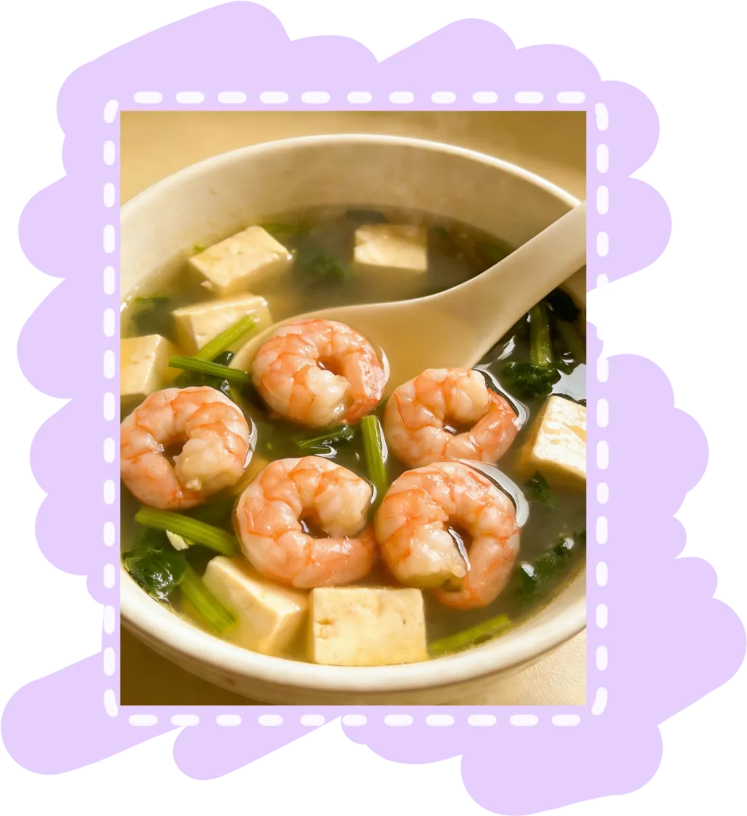 晚上蔬菜豆腐汤变花样,番茄蛋汤紫菜汤都行,无油是关键。虾仁换蛤蜊鱿鱼或魔芋丝,饱腹感一样强。
