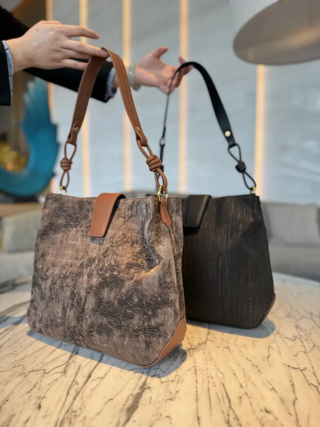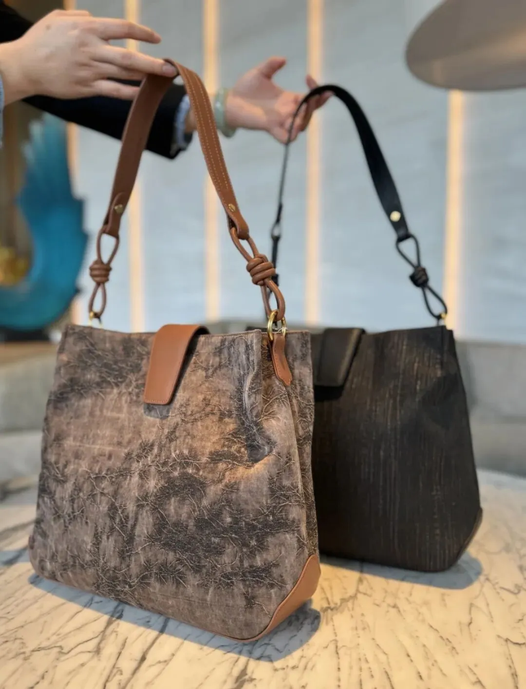 ②香云纱托特包(棕色、黑色)