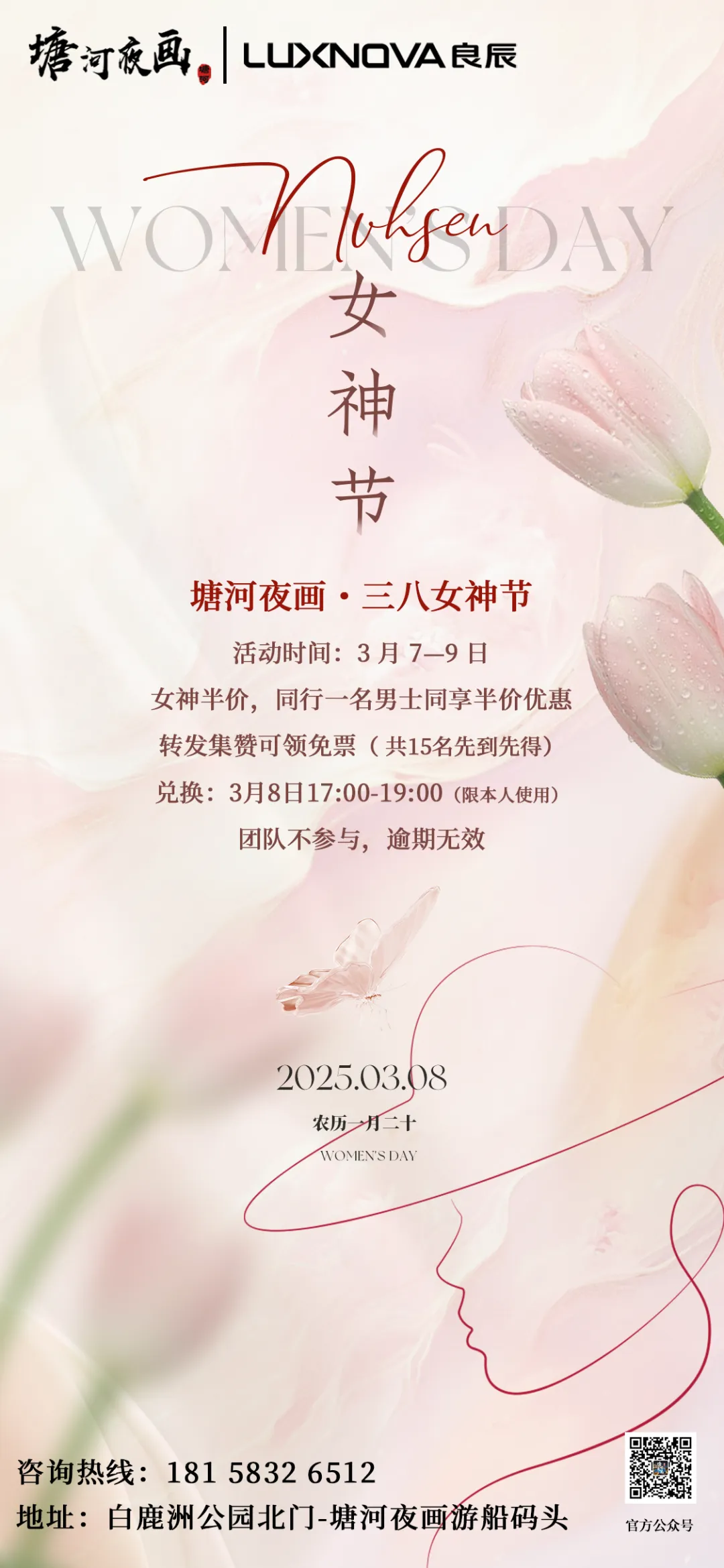 塘河夜画 |女神节 · 半价畅玩,免票相赠