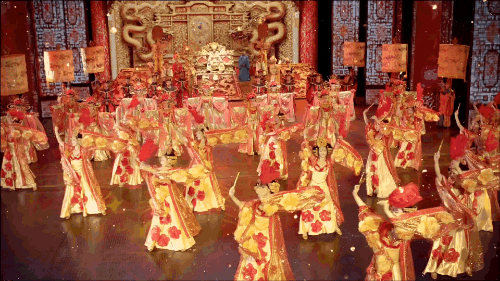 第一场《宋宫宴舞》表演南宋皇宫里奢侈豪华的宴舞,处处笙歌管弦,一派歌舞升