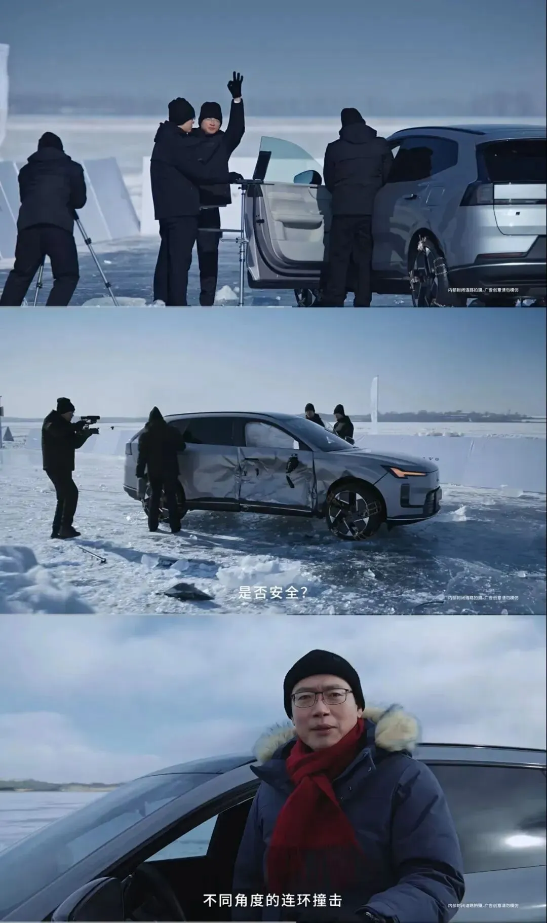 其次冰壶撞车,本身就和用户真实用车场景无关!把巨型冰壶当作碰撞对象,创意可以理解,但和安全测试完全不搭边。