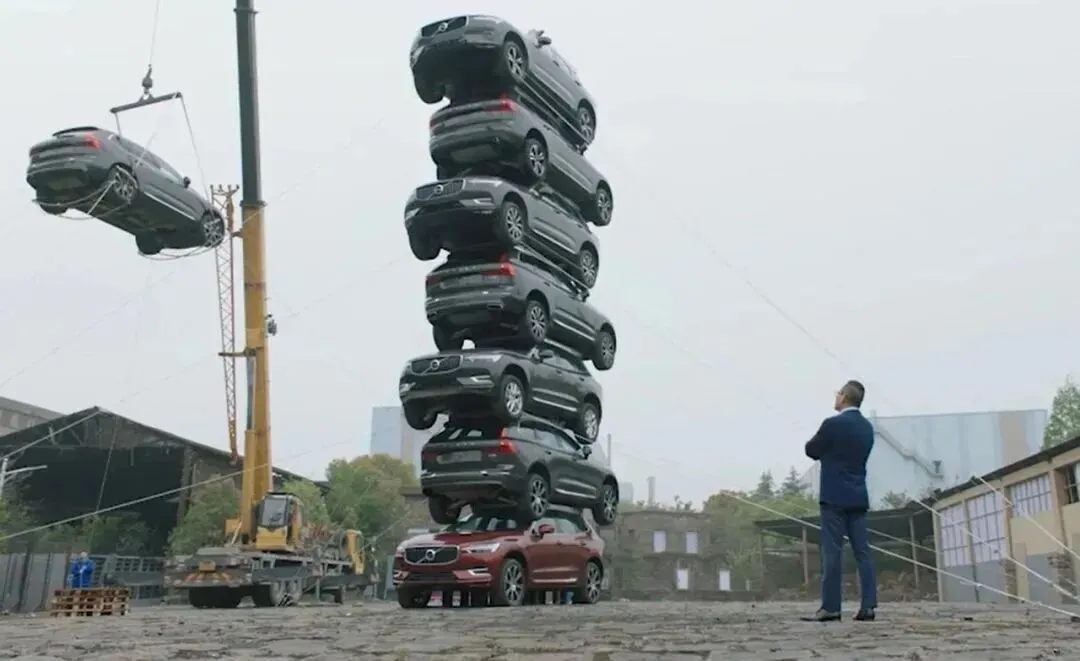 早年沃尔沃XC60的“7车叠罗汉”,同样是总裁出镜、制造话题。每一次,都是高成本、强表演、强个人曝光。