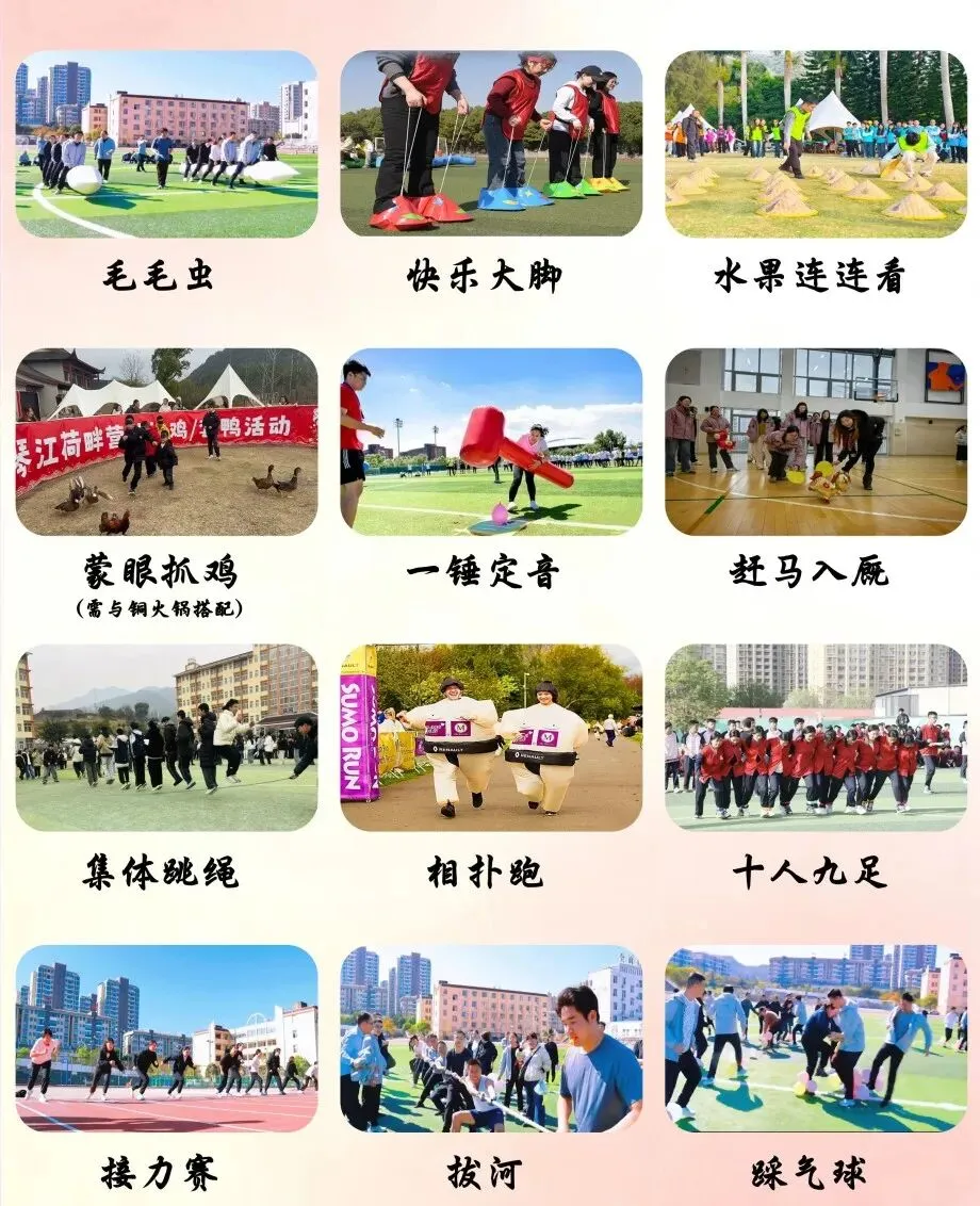 毛毛虫竞速、快乐大脚、水果连连看、相扑跑、十人九足…… 超多经典趣味项目,全员参与嗨不停,在欢声笑语中拉近距离、凝聚团队力量。