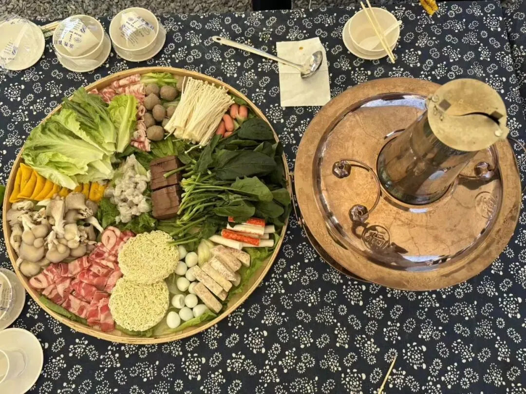 双味锅底搭配丰富食材,围炉涮煮,暖意融融氛围感拉满