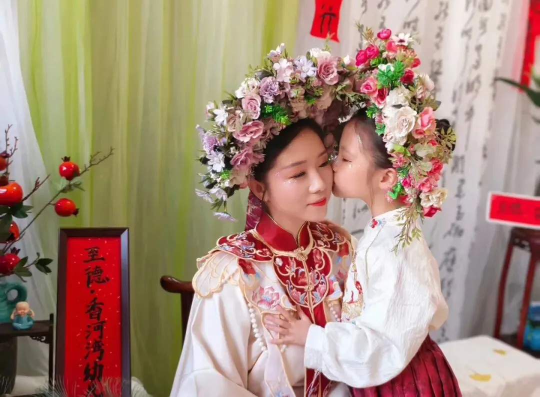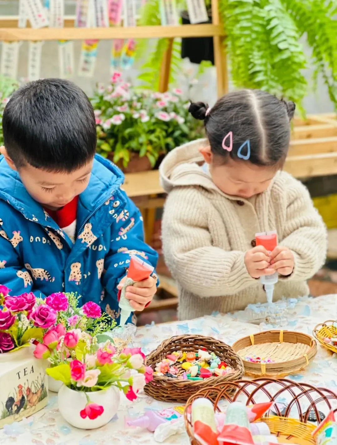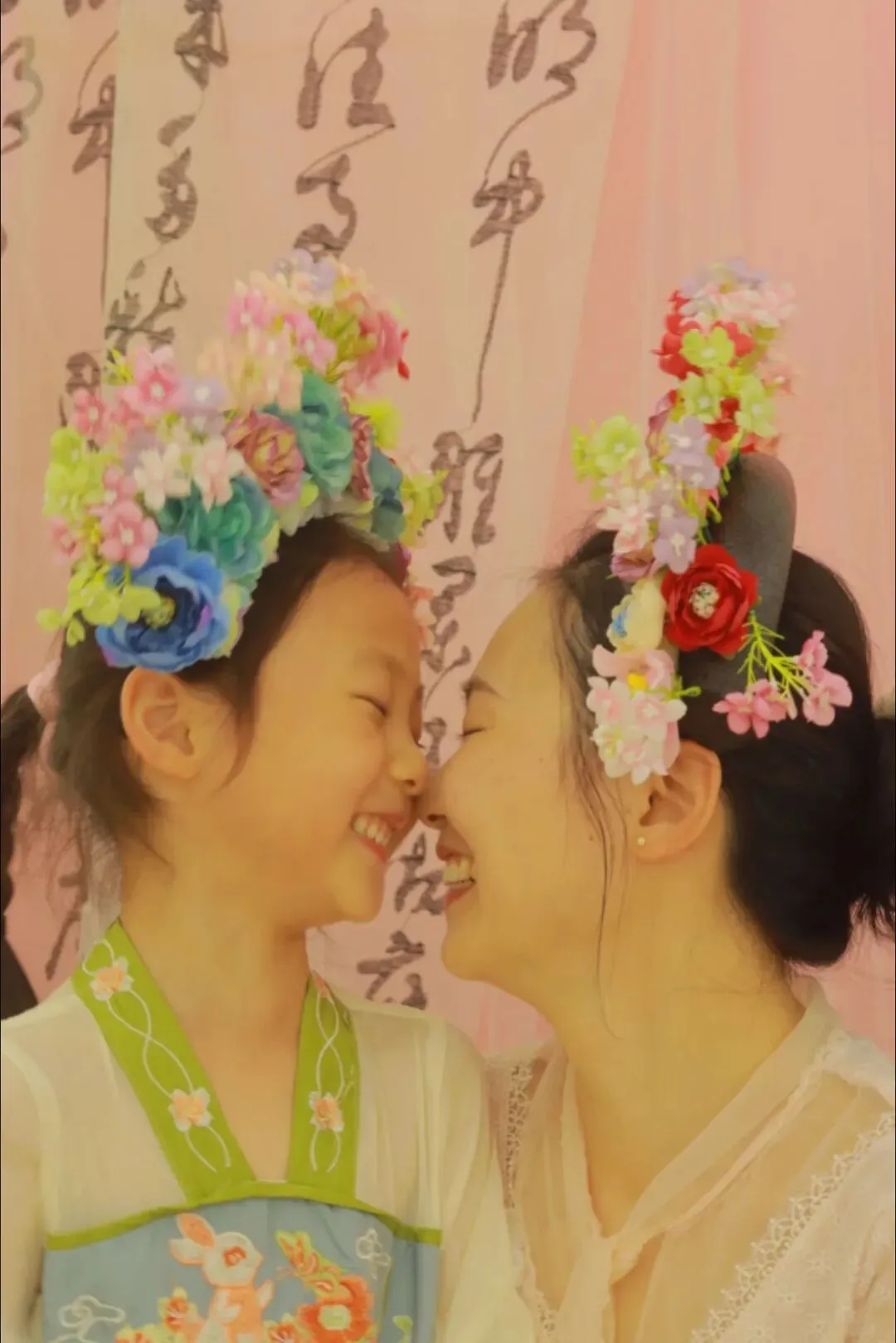 活动内容:亲子合作制作簪花头饰,互相佩戴,表达爱意。