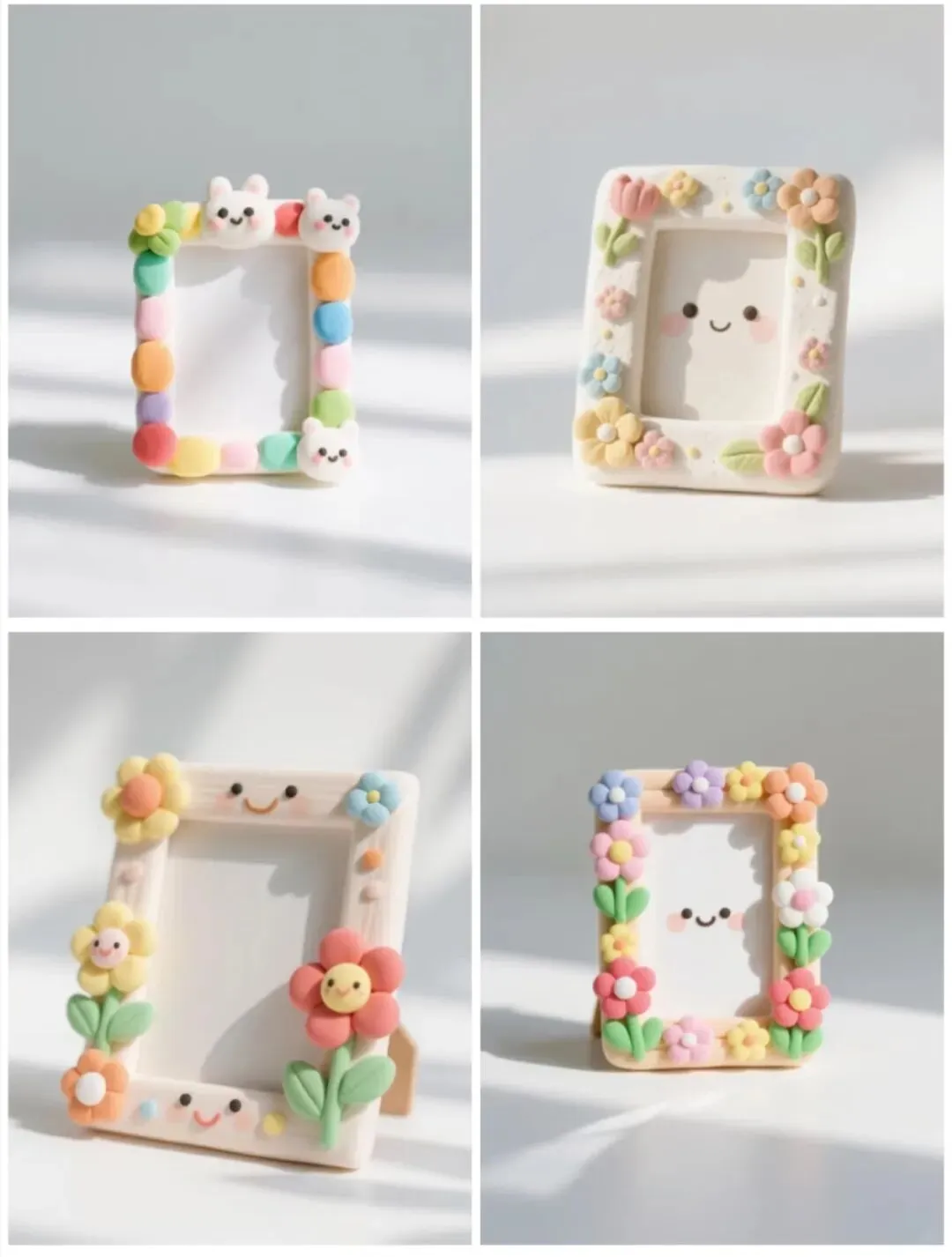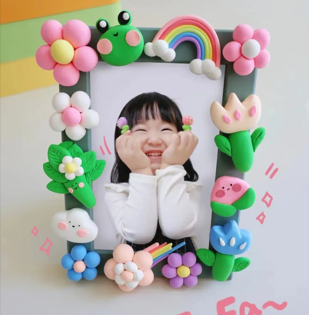 物料准备:木质空白相框(尺寸自定)、亲子照片、天然干花干叶、白乳胶、热熔枪、双面胶、彩色丝带、小珠子装饰品、剪刀、湿巾、托盘、湿巾等。