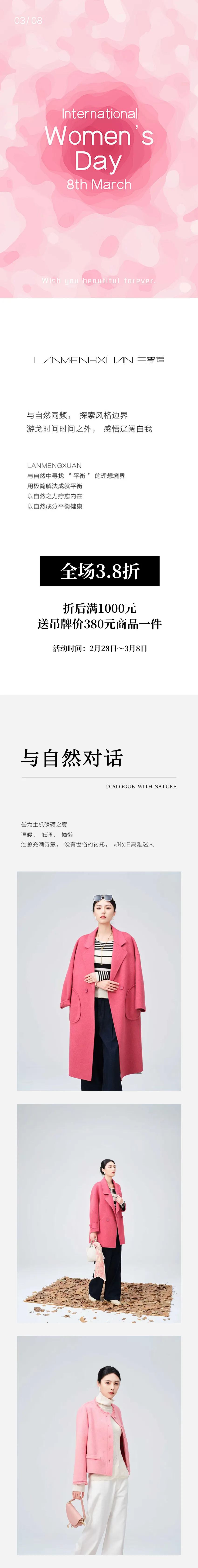 当前位置:首页>美女资讯>兰梦萱 | 女神节全场3.8折,满1000再送380元商品