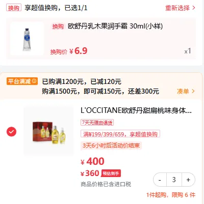 拍3均价💰360/套,再+6.9换购🎁护手霜30ml点我去查看