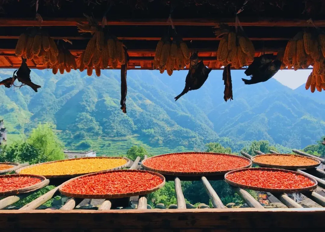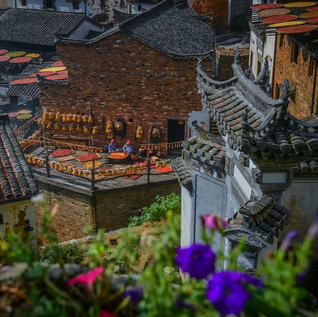 后前往游览崖上古村、水墨梯田人家---篁岭景区】(车程 小时)含往返索道】青山向晚盈轩翠,碧水含春傍槛流。周边梯田覆叠,白云环绕,被称为梯云人家。篁岭是自然的宠儿,被周边数千亩梯田簇拥,四季皆有各种颜色的呵护、娇宠,稍不留神就会碰翻颜料桶,于是乎漫山遍野的大红、新绿、嫩黄。【天街】民居围绕水口呈扇形梯状错落排布,形村落带您体验南方的“布达拉宫”。徽式商铺林立,前店后坊,一幅流动的缩写版“清明上河图”。家家户户屋顶晒盘云集,绘就出一幅“晒秋人家”风情画。【卧云桥、垒心桥】索桥似玉带将两岸的梯田串接,体验百米高空玻璃栈道。【百花谷】欣赏紫色花海薰衣草、三角梅、玫瑰、孔雀草花、紫薇花等美景,近距离欣赏花海世界,形成“窗衔篁岭千叶匾,门聚梯田万亩花的美景。