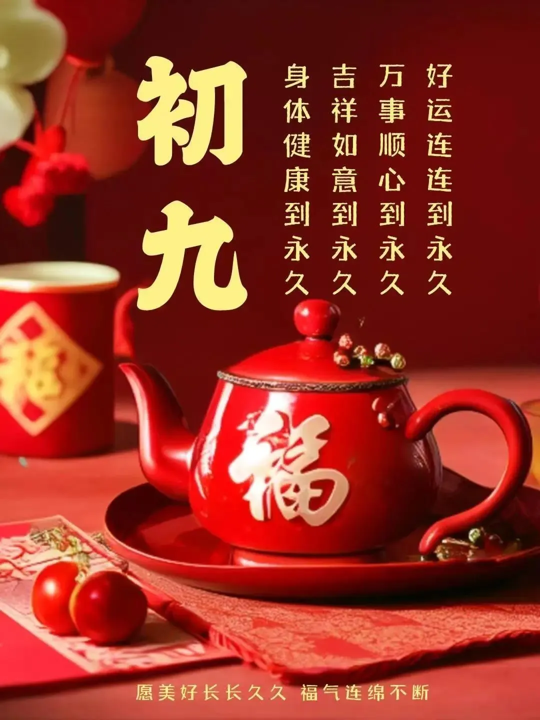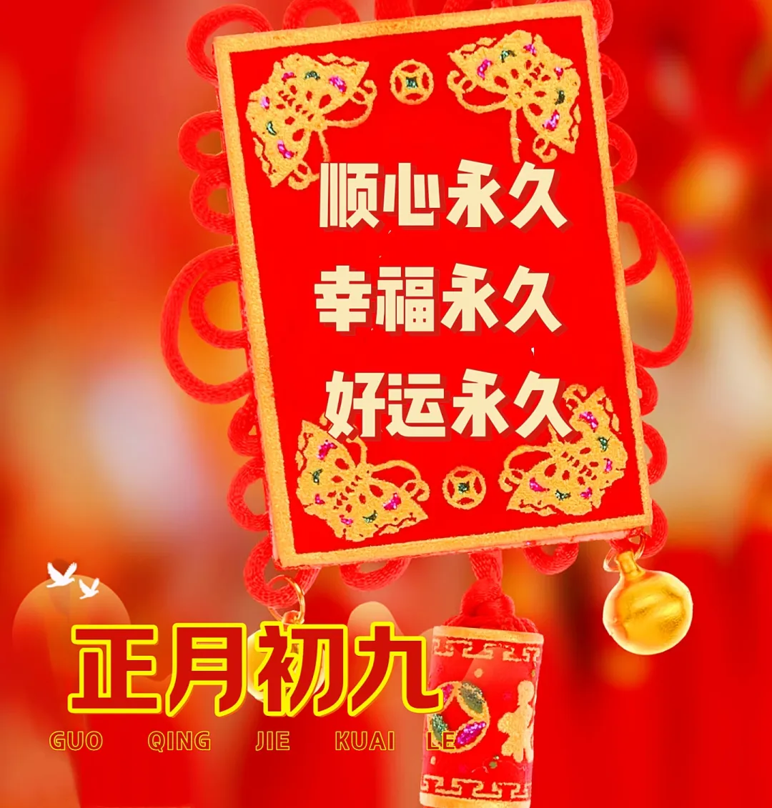 🌹🤝🌺🌴初九庆佳节,福禄财富多。家和万事兴,喜笑随年过。幸福常相随,平安永固柱。健康身体好,合家人团聚。初九送祝福,愿你幸福绕。