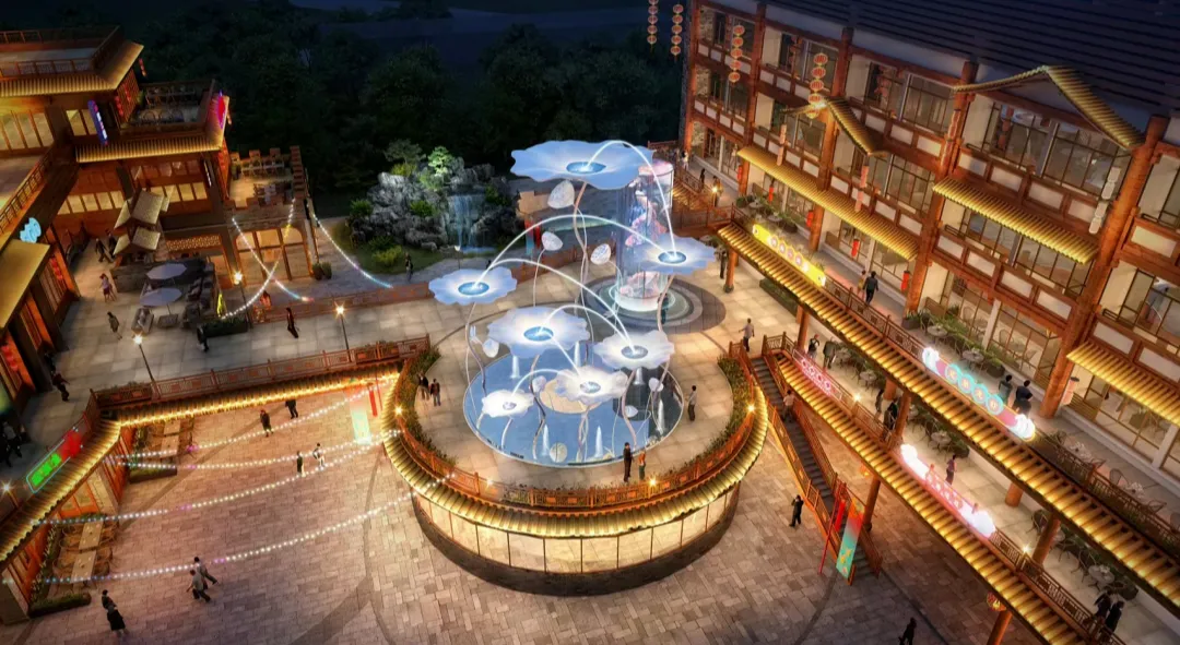水面上,金属质感的荷叶在水汽氤氲中林立,栩栩如生