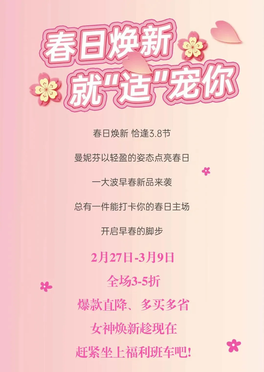 当前位置:首页>美女资讯>曼妮芬 | 3.8女神节,焕新趁现在,进店即享超值宠爱!全场3-5折震撼开启!