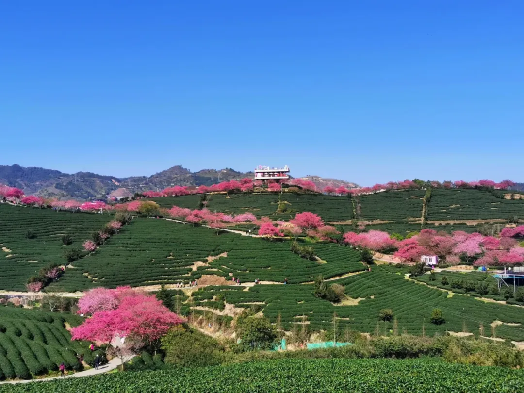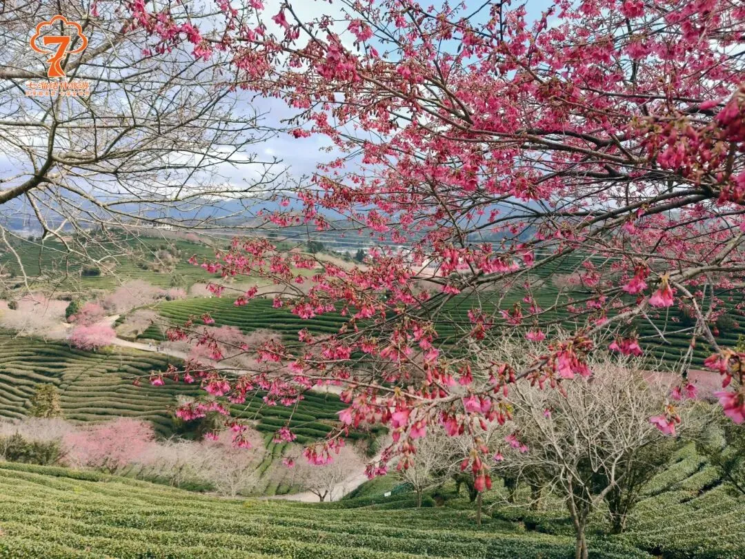 这里还是全国最大的高山乌龙茶生产基地,而樱花园就藏在这片绿色茶海里。茶田夹杂樱花,相互映衬,动人樱花与满山茶香交相辉映的独特美景,你还能上哪去寻呢?