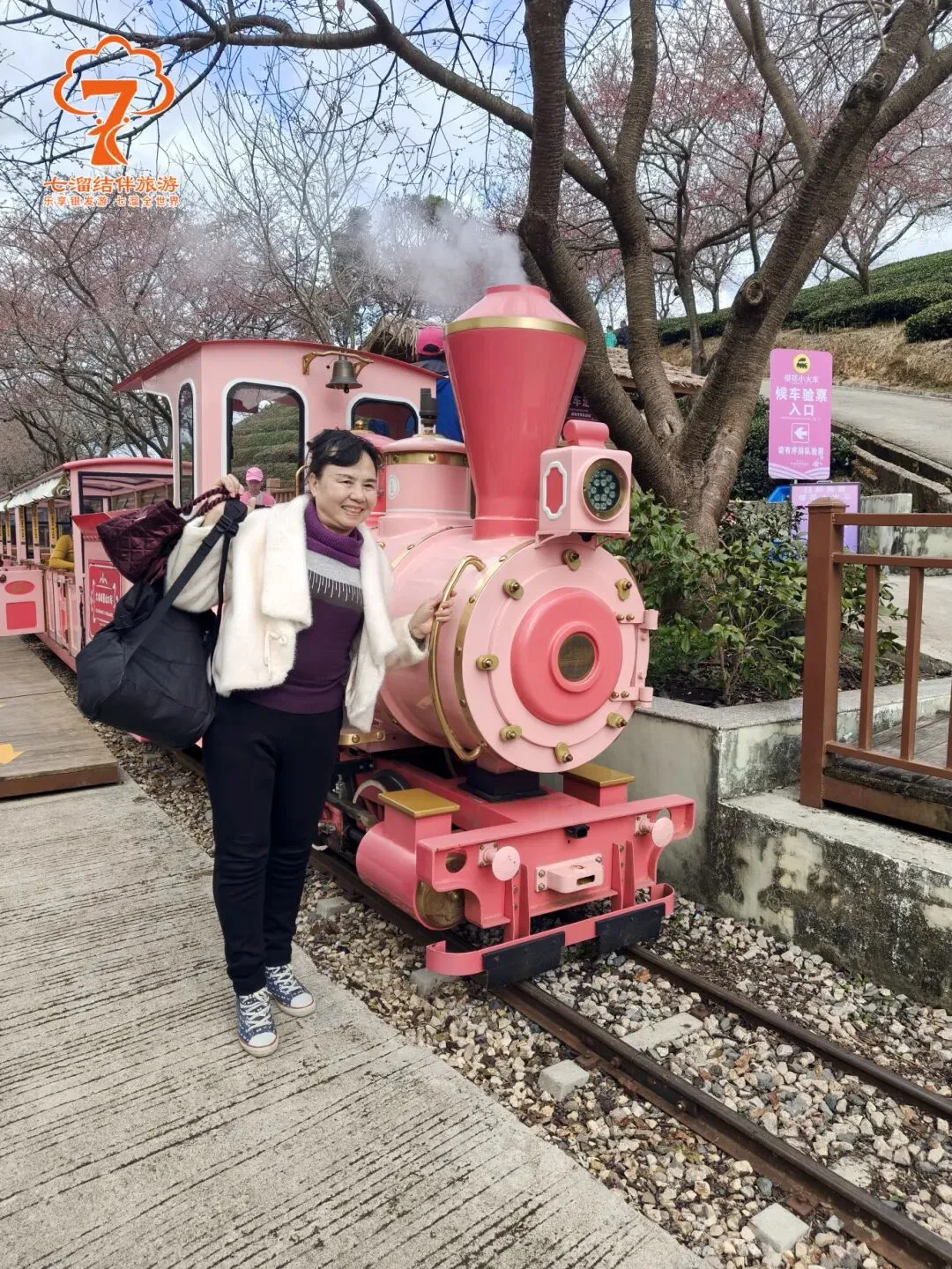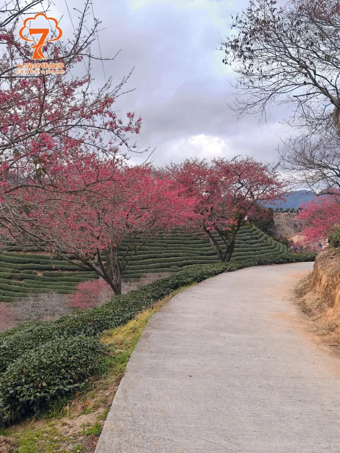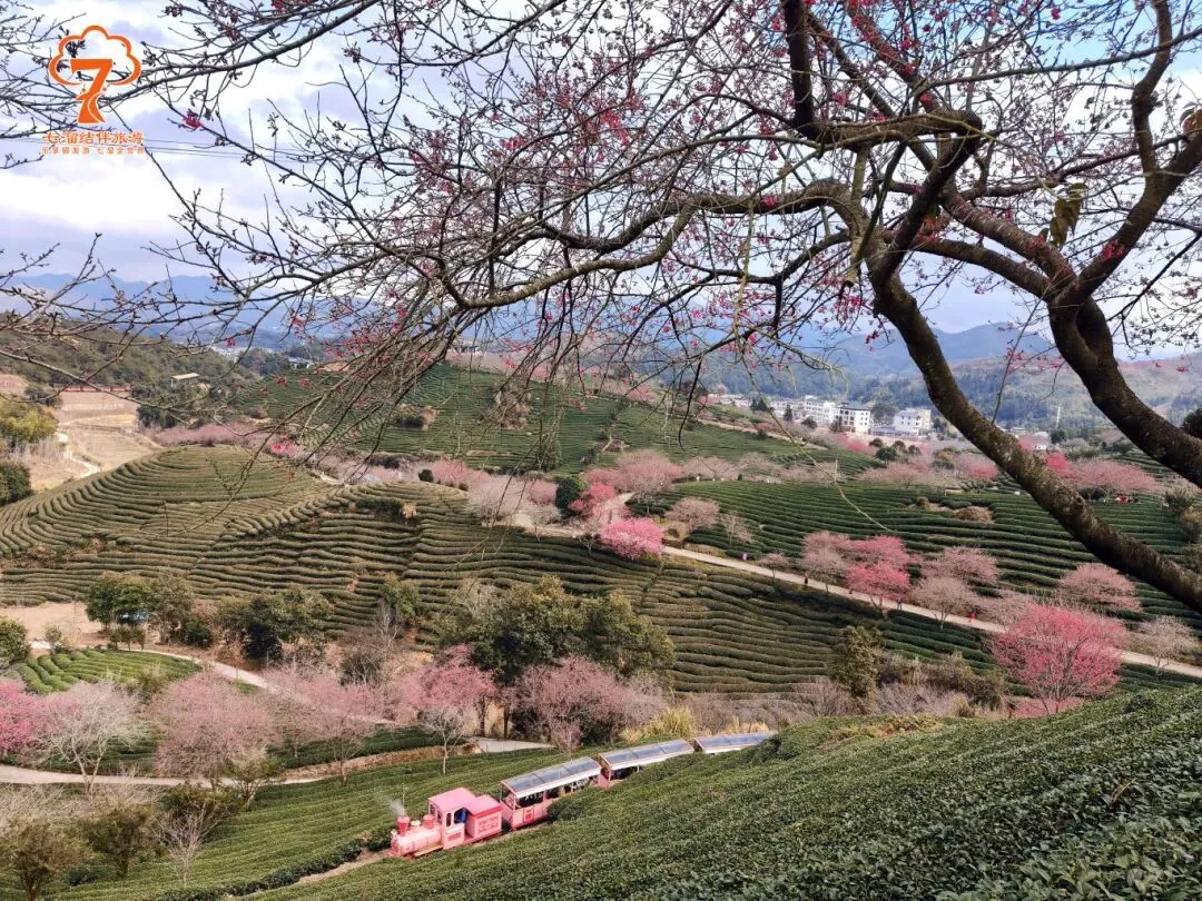 这里除了美景,还有长达1000米,在茶山行驶的网红樱花小火车。拿着车票,站在月台,带上TA搭一辆粉粉红红的小火车,然后坐在窗边,欣赏樱花美景,穿行在花海里,或是迎接一场樱花雨,想想就觉得浪漫。
