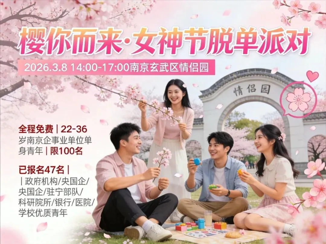 樱你而来,女神节脱单派对:47位体制内青年已就位,最后53席等你来!