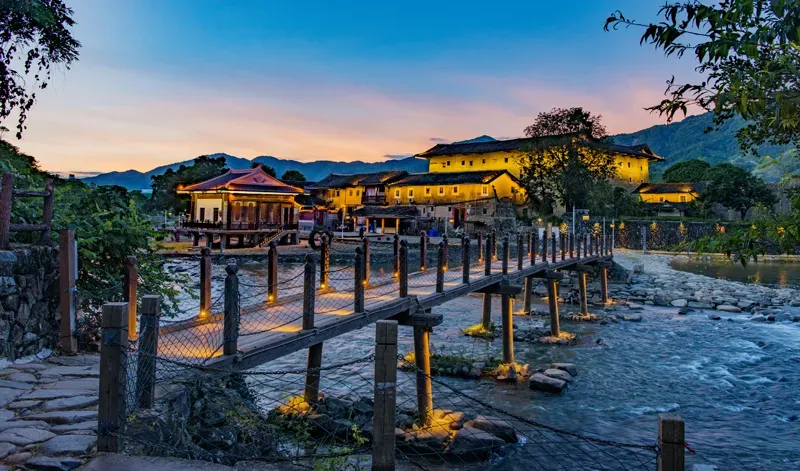 早餐后,游览电影《云水谣》、《鲁冰花》、《常常回家路》的拍摄地、“中国最美乡村”——【云水谣古镇】,古道沿溪而建,漫步云水谣古道,感受小桥流水、千年古榕树的宁静与悠闲,聆听云水谣传奇故事……,参观怀远楼,它建于1905-1909年,占地1384.7平方米,是建筑工艺最精美、保护最好的双环圆形土楼,2006年5月被列为全国重点文物保护单位。参观和贵楼,始建于清代雍正十年(1732年)。和贵楼有四奇:一奇因为他是已知所有福建土楼里个头最高的方楼;二奇是因为他是建在沼泽地上的土楼,整座楼像一艘大船停泊在沼泽地上,虽历经200多年仍坚固稳定,巍然屹立。三奇是因为楼内有二口水井,相距不过十多米,却一口清亮如镜,水质甜美,另一口却混浊发黄,污秽不堪,被人称为"阴阳井;四奇是因为和贵楼结构是楼包厝,厝包楼的特征。